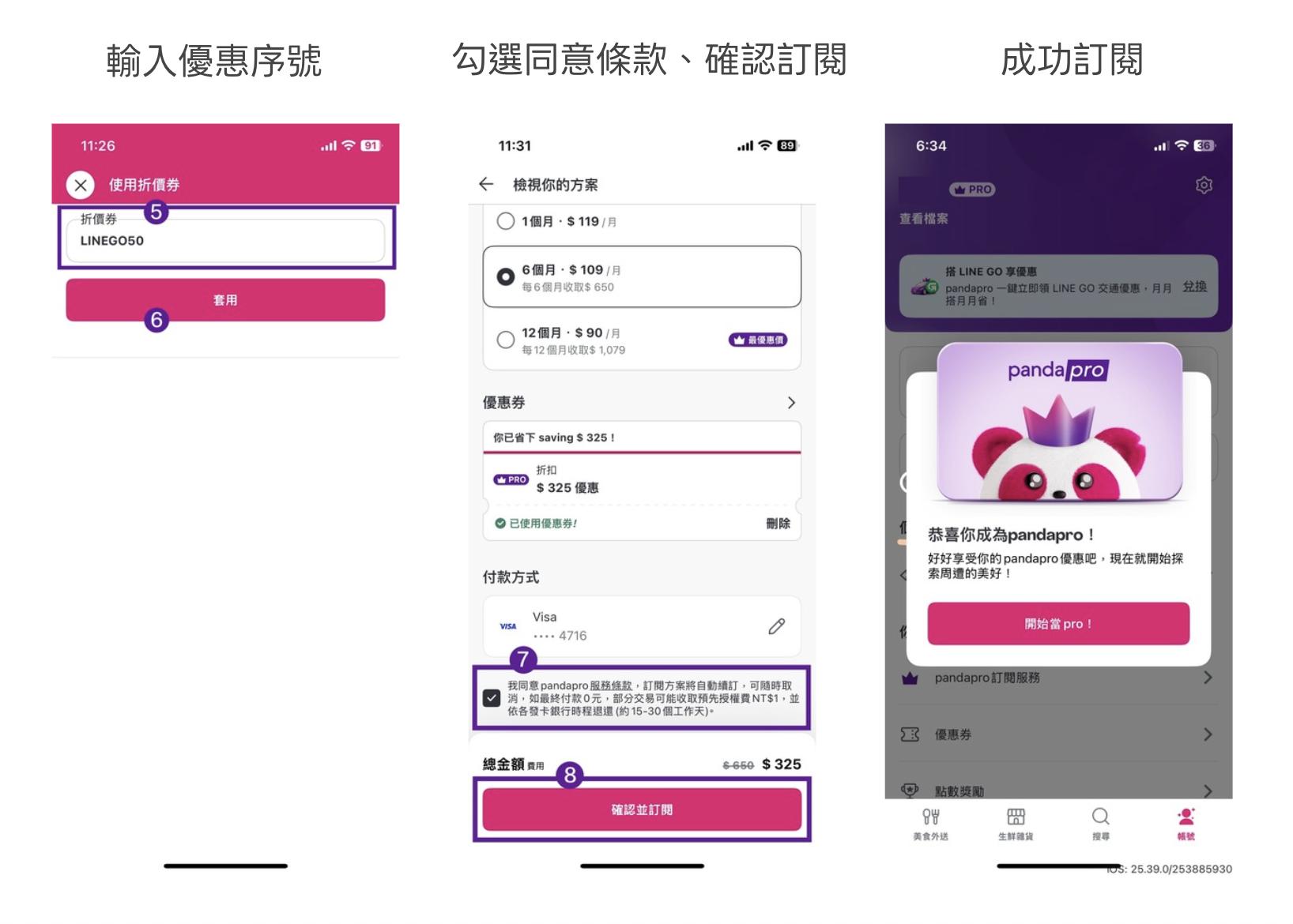 > 訂閱方式: 請點選上方活動連結後依循下方步驟完成 pandapro 訂閱