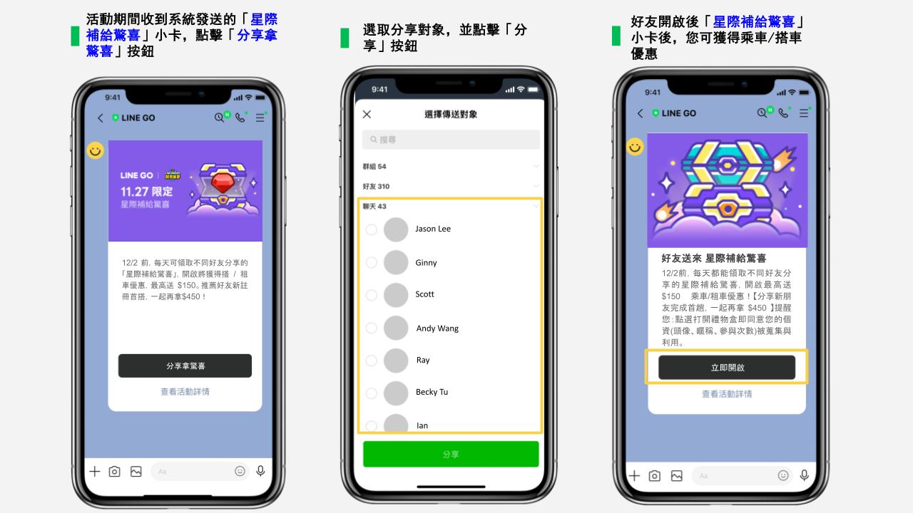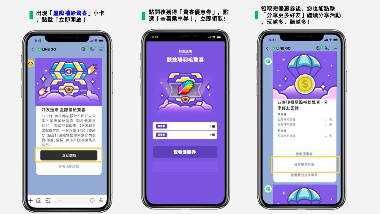 🥳活動期間每天分享好友,你跟好友可一起獲得乘車、租車優惠,最高單趟折 $150 點擊下方按鈕,立即分享!