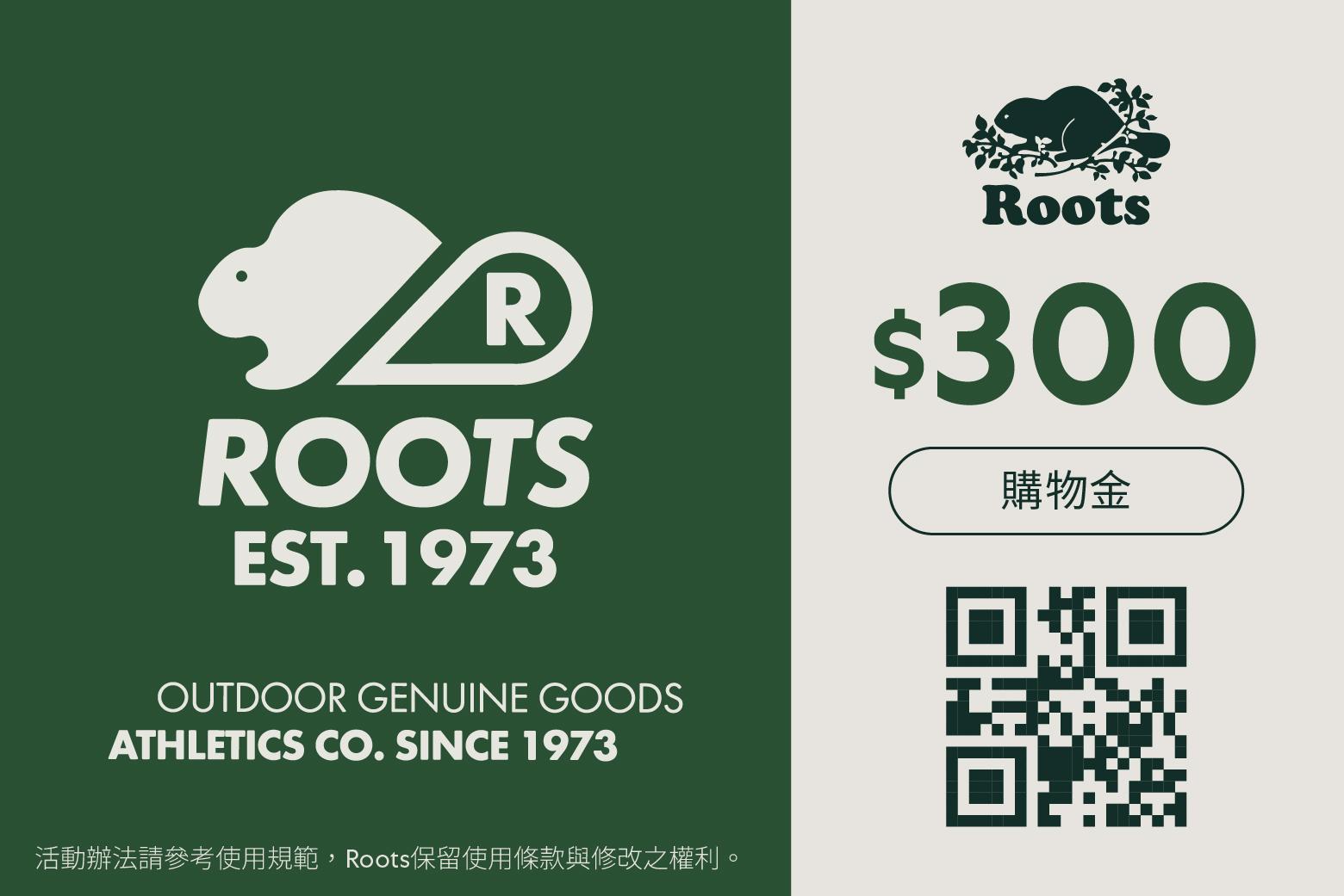 優惠金面額: ROOTS $300 優惠金 (限單筆消費折扣後滿 $2,500 使用)