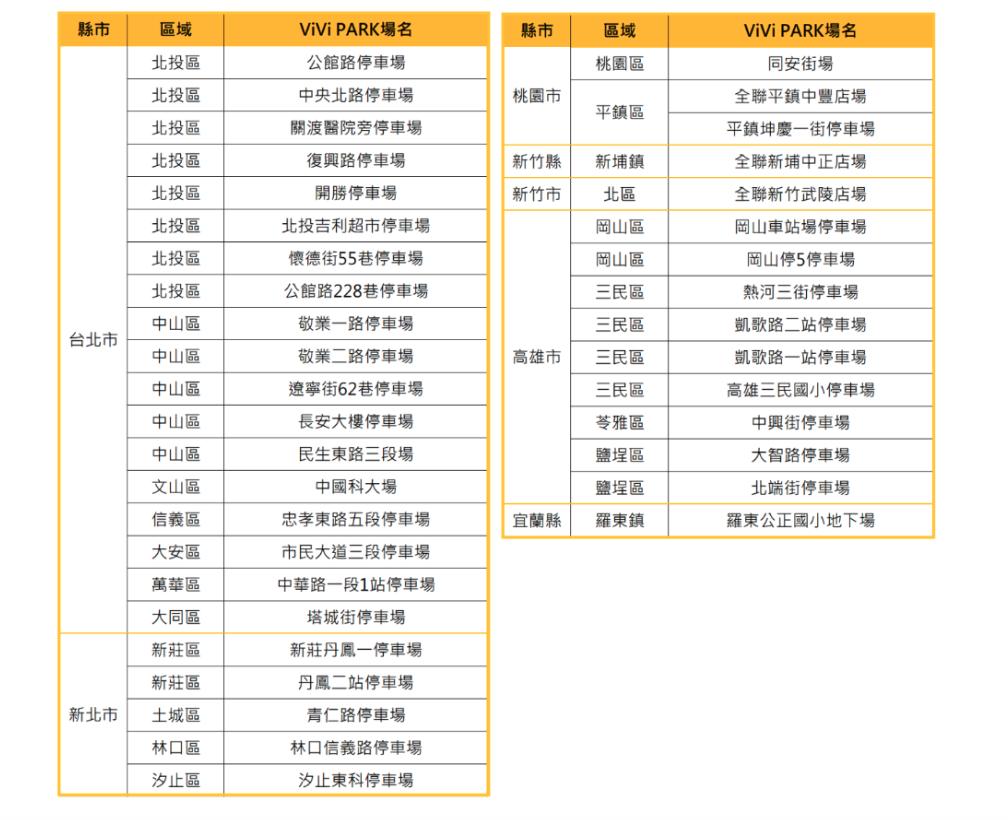 於以下 ViVi PARK 指定停車場,可享免費停車 1 小時 🅿️