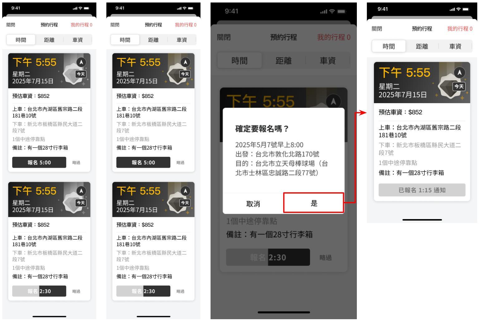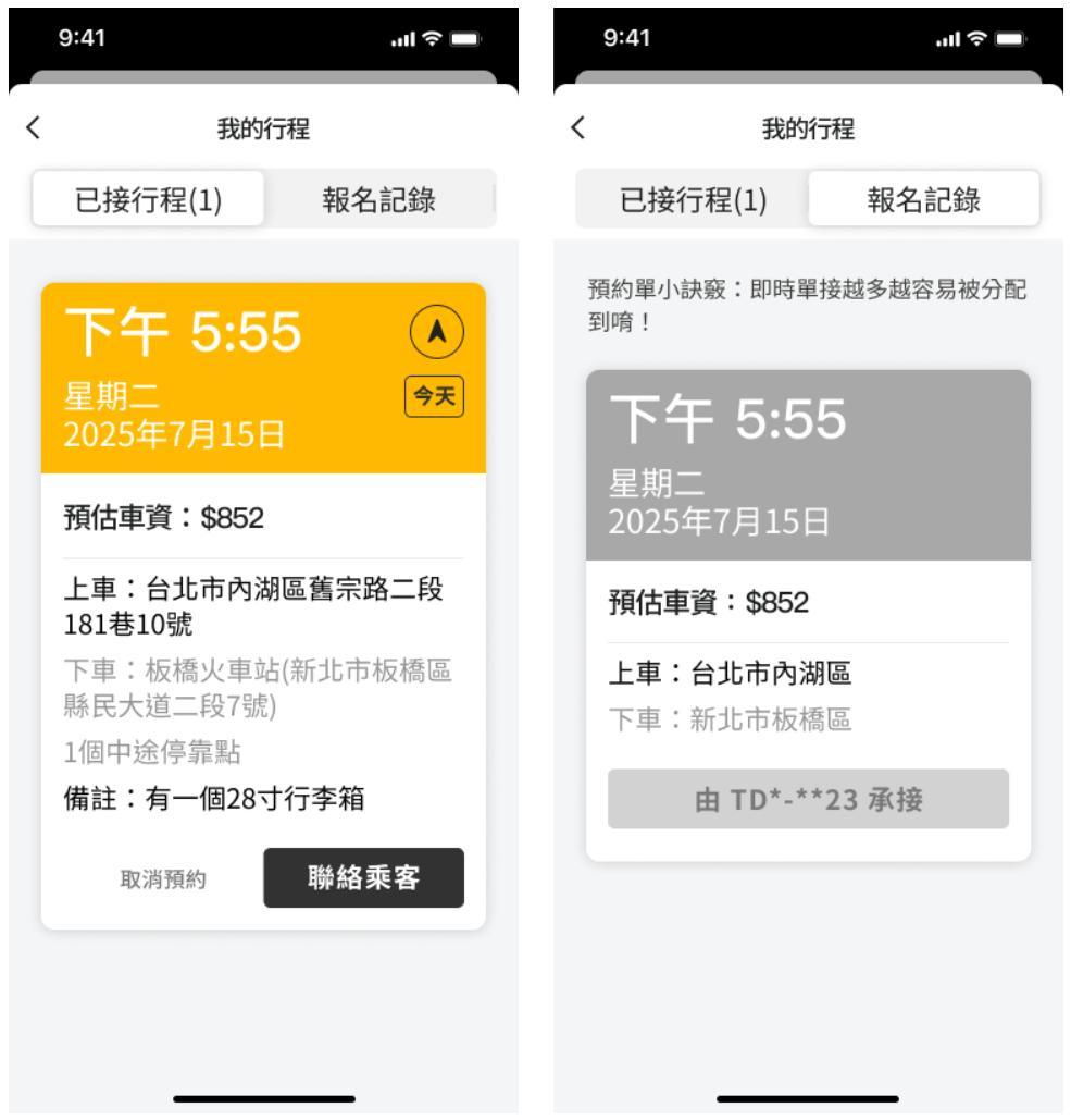 圖2 - 新版已接行程畫面