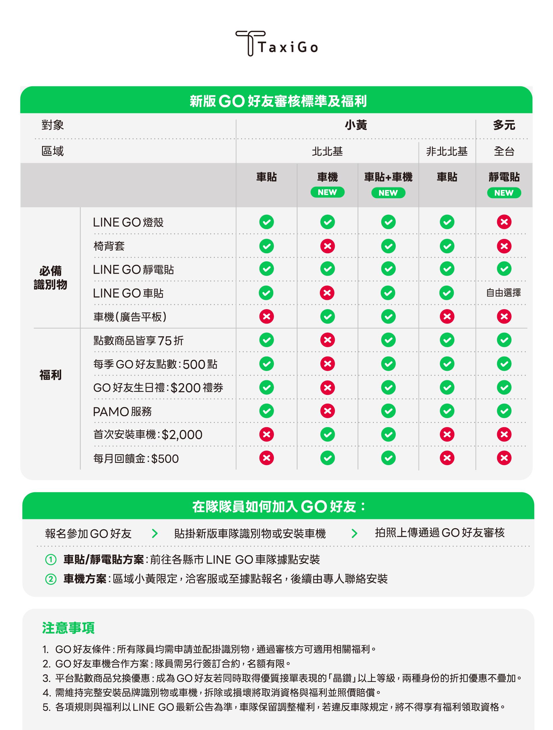 ▶ 車隊將不定期公告GO好友審查時間,請保持GO好友識別物完整,若於審查不符,將有權取消福利資格。