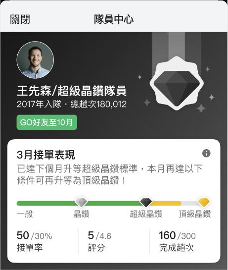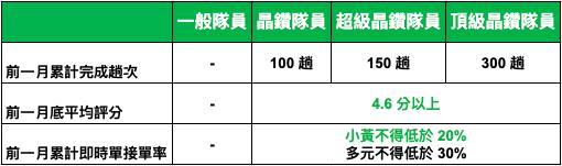 ▶ 依前月接單表現,決定隔月隊員等級及福利,將於每月1日凌晨2點更新於App「隊員中心」