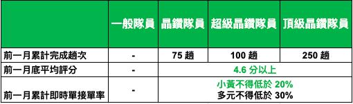 ❈ 隊員每月接單表現所屬等級,於每月一日凌晨2點後更新於App「隊員中心」