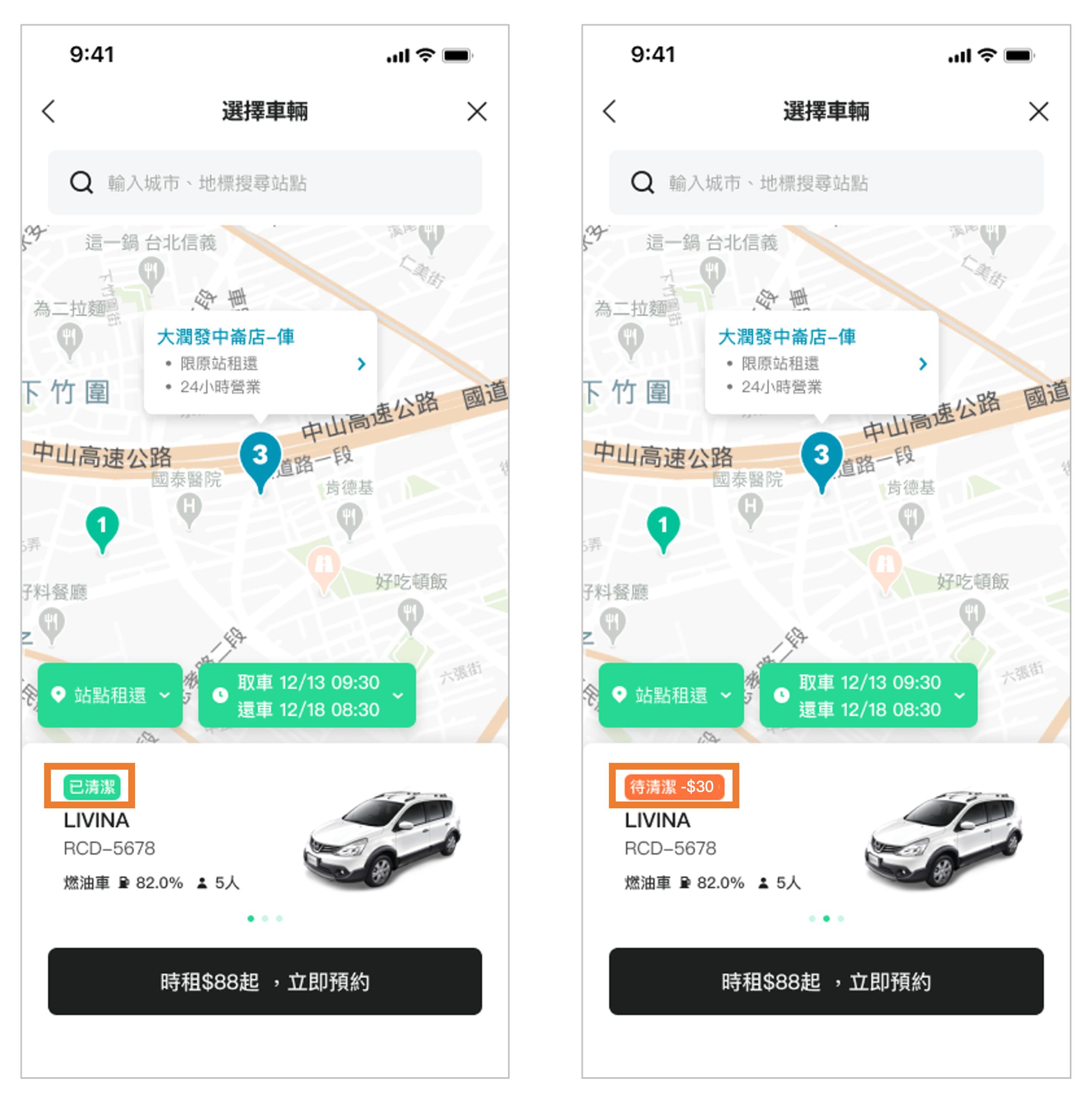 為實踐清消作業公開透明,當消費者還車後,該車輛自動被系統列入維運團隊待清潔之名單,此時車輛顯示為「清潔補貼」。完成清潔後將取消此顯示資訊。