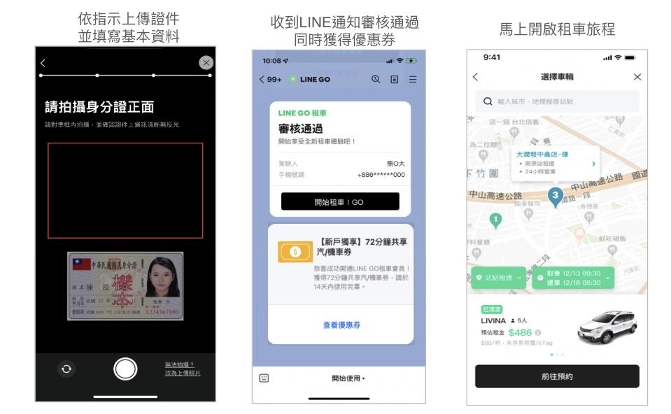 1、完成開通 LINE GO 租車資格 (上傳證件資料>通過審核>成為租車有效會員),收到審核通知即會獲得優惠券。(原格上會員不適用)