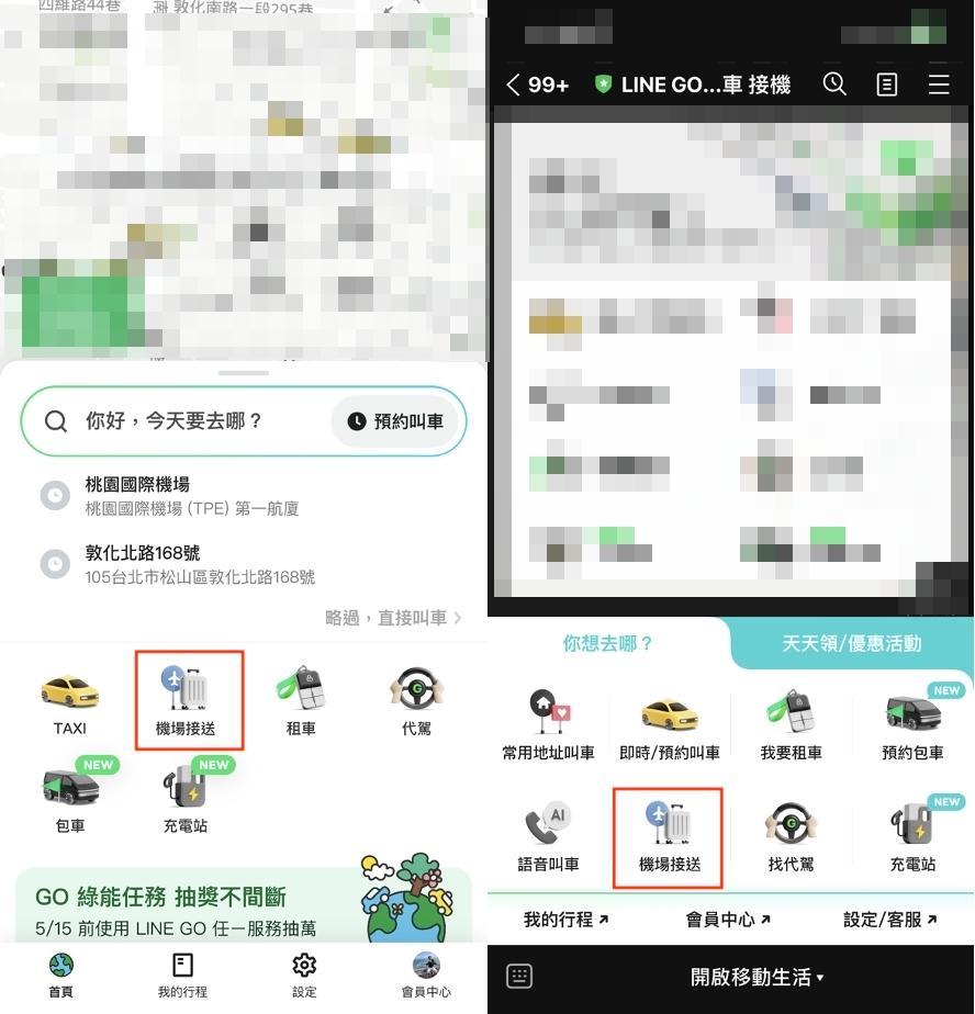 2. 開啟 LINE GO 地圖叫車頁,並點選下方『機場接送』的圖示