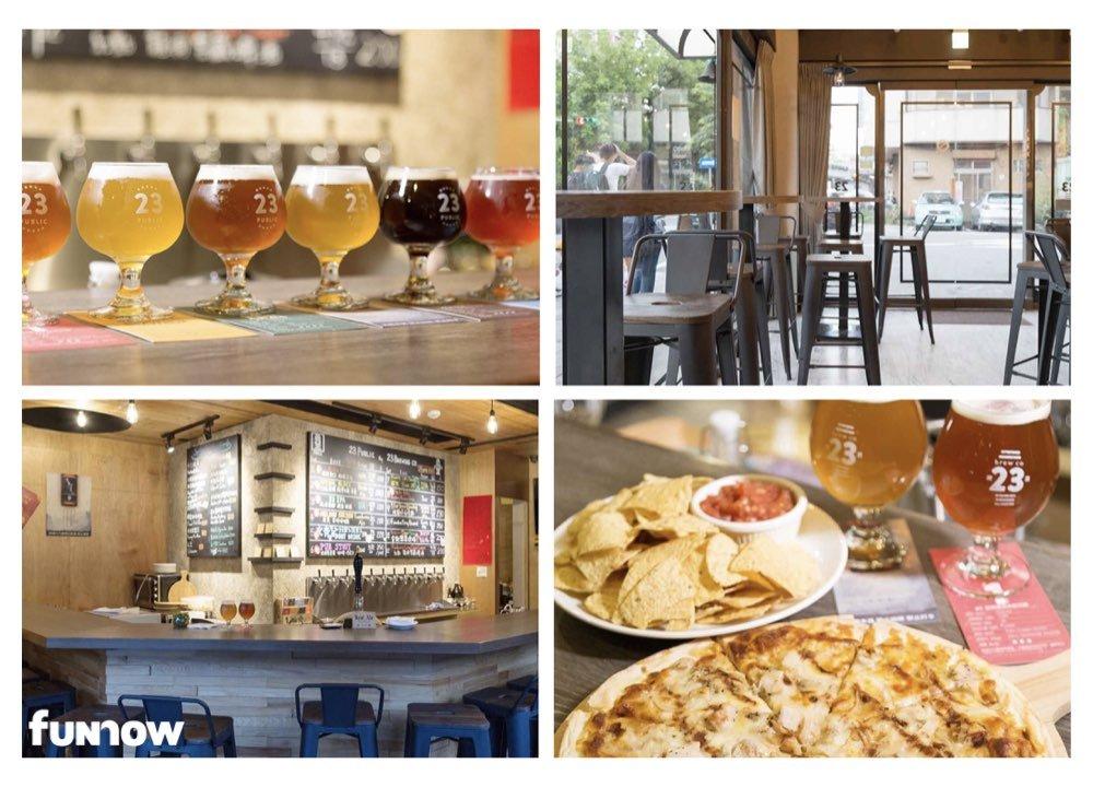 23 Public ,是 23 號啤酒這個台灣精釀品牌希望大家好好品嚐啤酒的地方,你可以在這裡體會精釀啤酒與一般啤酒截然不同的風味!店內提供二十幾種屬於台灣的精釀。結合在地食材所釀出的就精釀啤酒,就跟藝術品一樣,色澤、香氣、泡沫、口感,嚐到的瞬間,就會驚歎於它們的美味!